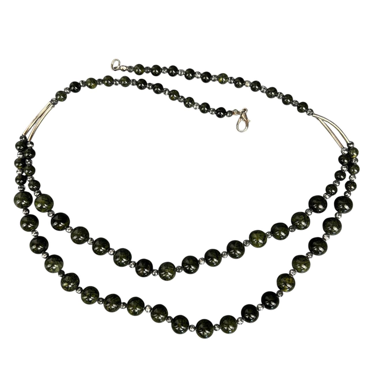 Бусы-колье 10/6 мм 2 ряда имитация камня змеевик зелёные