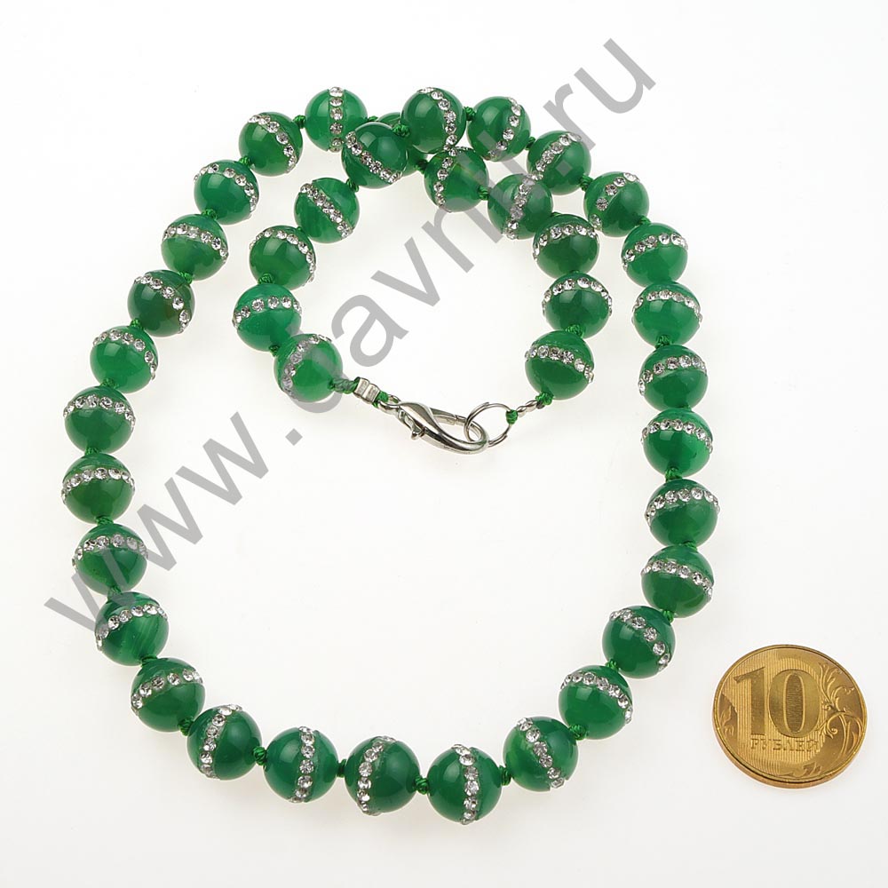 Бусы 10 мм нефрит со стразами