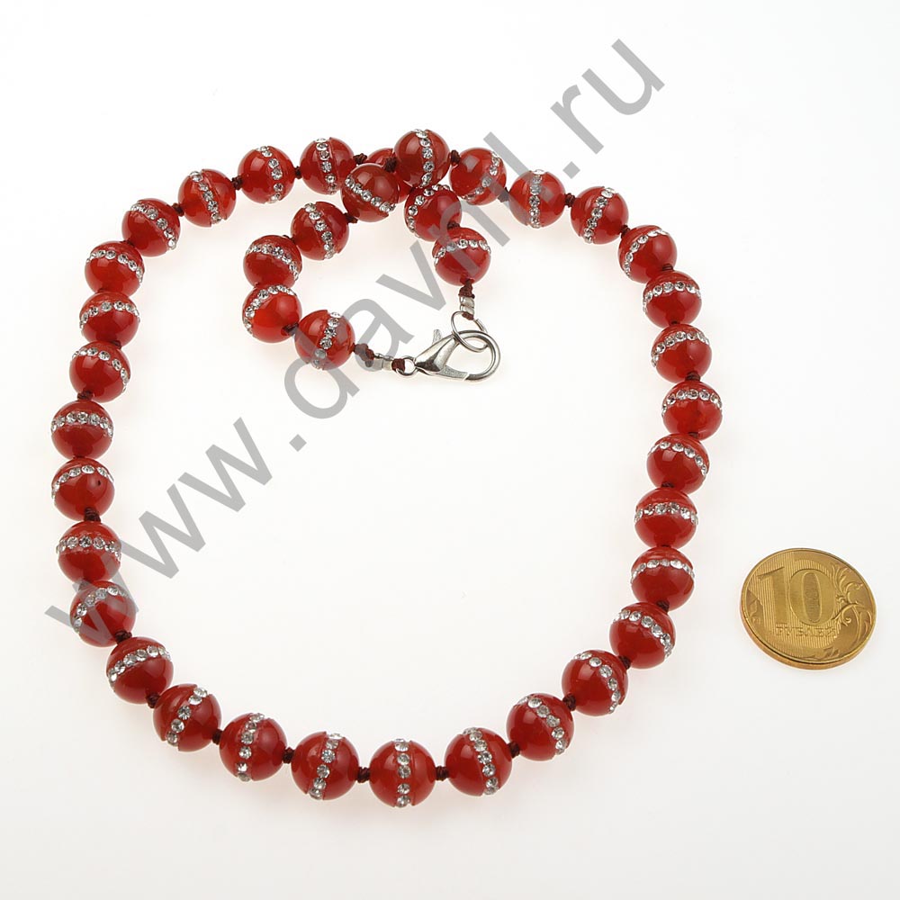 Бусы 10 мм агат со стразами коричневые