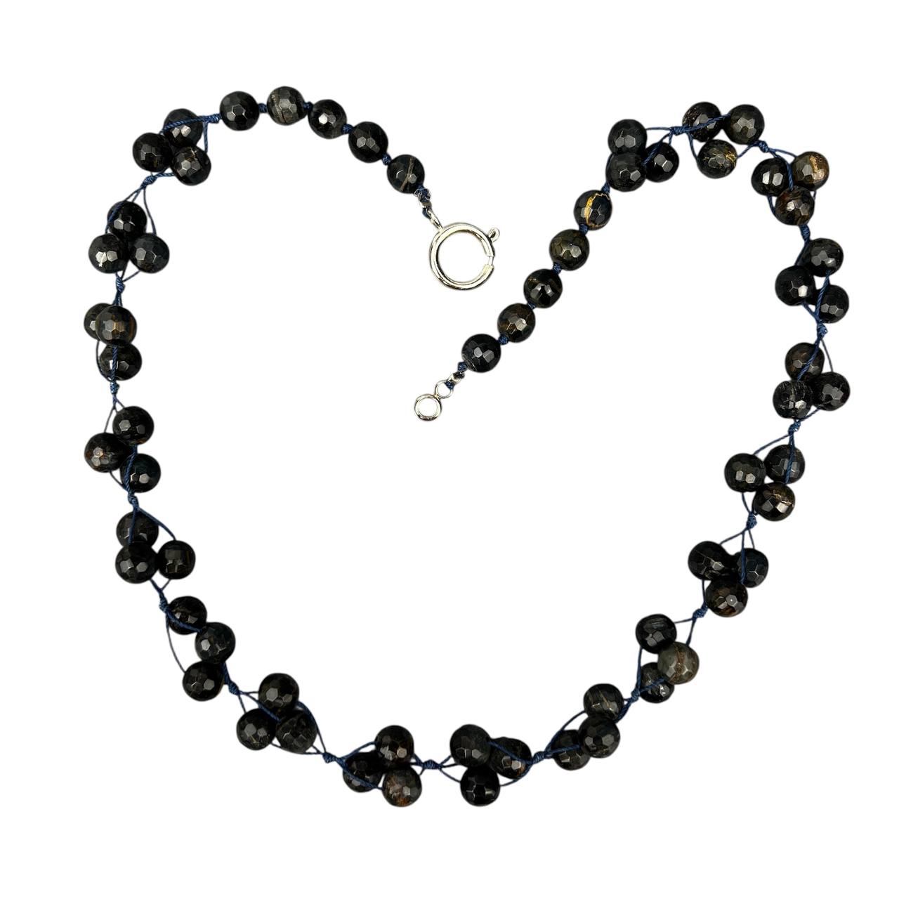 Бусы гранёные 6 и 12 мм плетёные на нити соколиный глаз