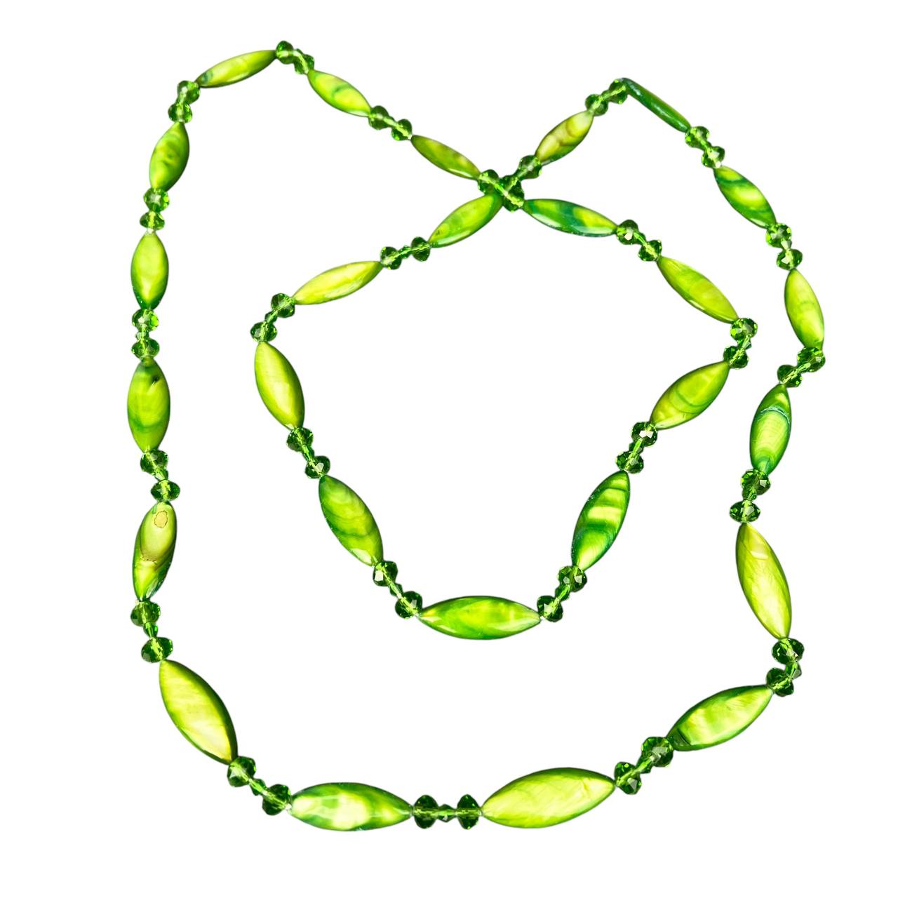 Бусы 8 мм 32*12 мм перламутр листик с хрусталём зелёные 1,2 м