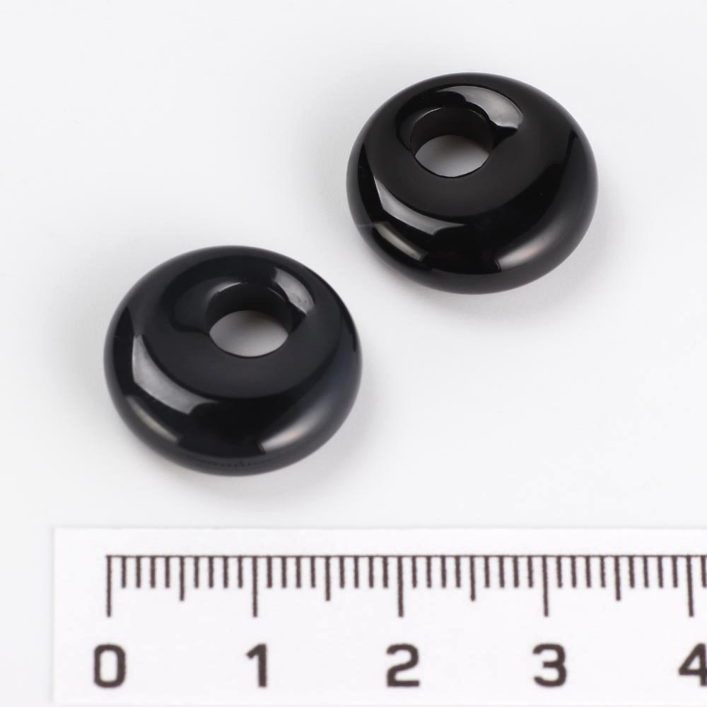 Подвески бублики натуральный чёрный агат 18 мм 2 шт 262