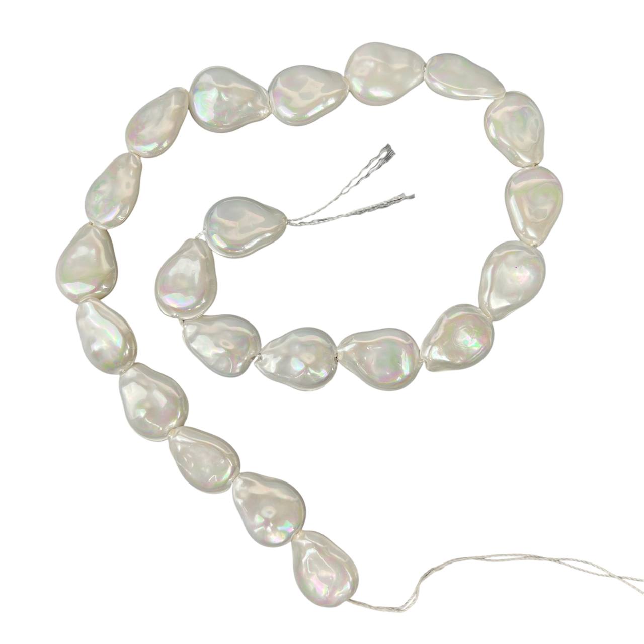 Бусины имитация барочный жемчуг плоская капля 21 шт белый
