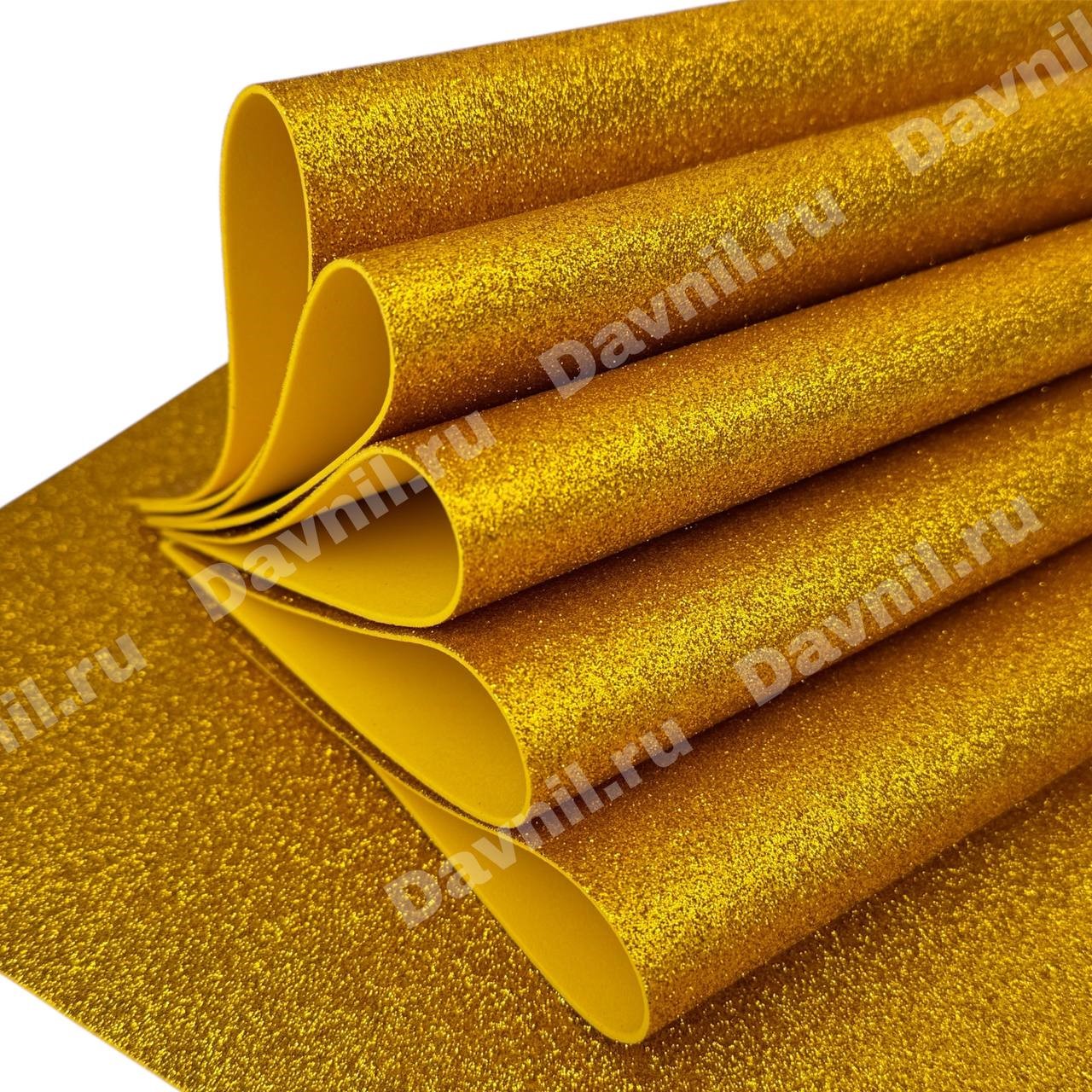Фоамиран глиттерный 20*30 см 2 мм 10 шт яркое золото 013