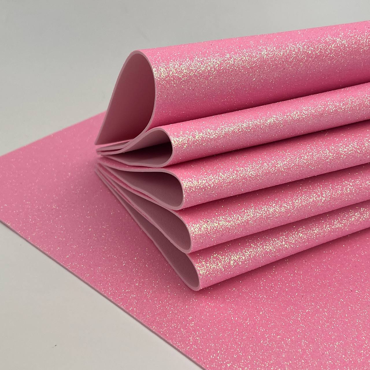 Фоамиран глиттерный 20*30 см 10 листов нежно-розовый 018