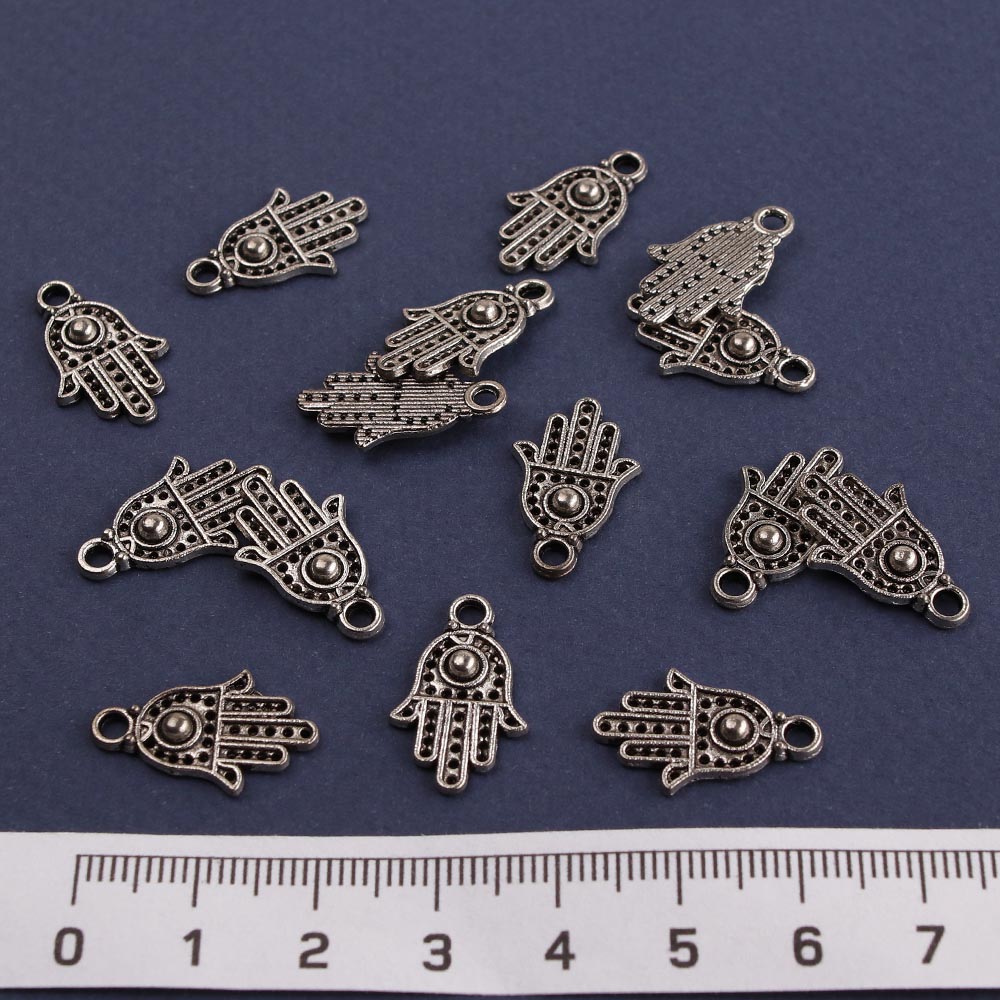 Подвеска металлическая тёмное серебро рука Фатимы (Хамса) 50 гр