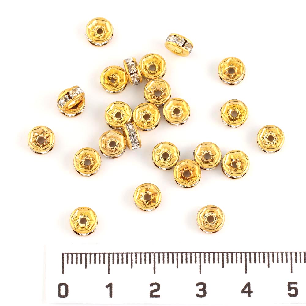 Рондель с белыми стразами 6 мм 100 шт золото