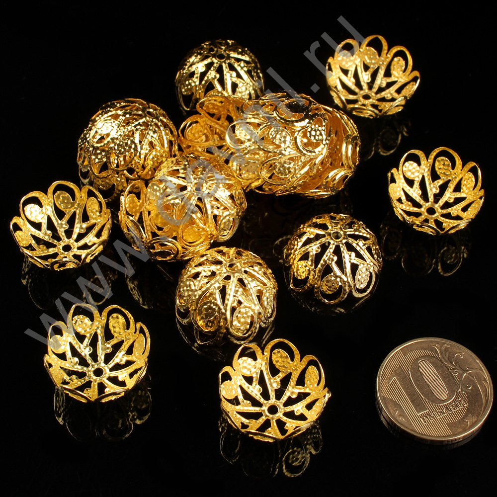 Шапочки для бусин ажурные 20 мм 31 г 50 шт золото