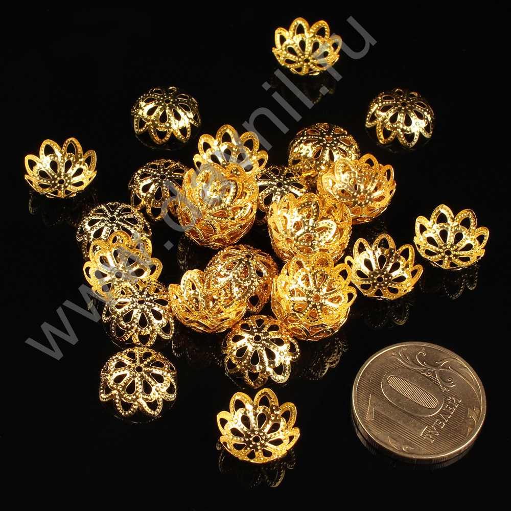Шапочки для бусин ажурные 13 мм 18 г 100 шт. золото