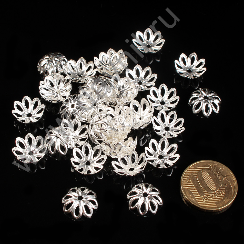 Шапочки для бусин ажурные 13 мм 16 г 100 шт серебро