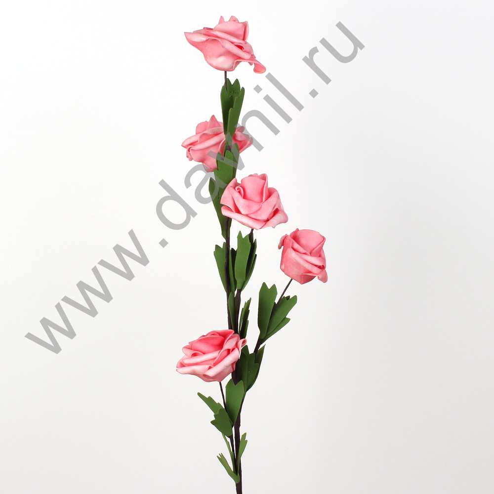 Куст розы 60 см 5 головок из фоамирана светло-розовый