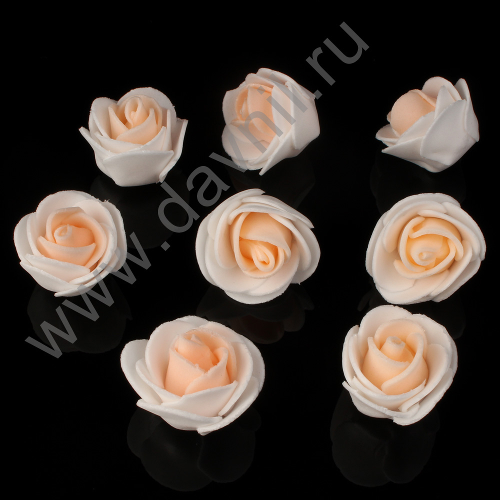 Роза из фоамирана 2 см 500 шт белый/персиковый