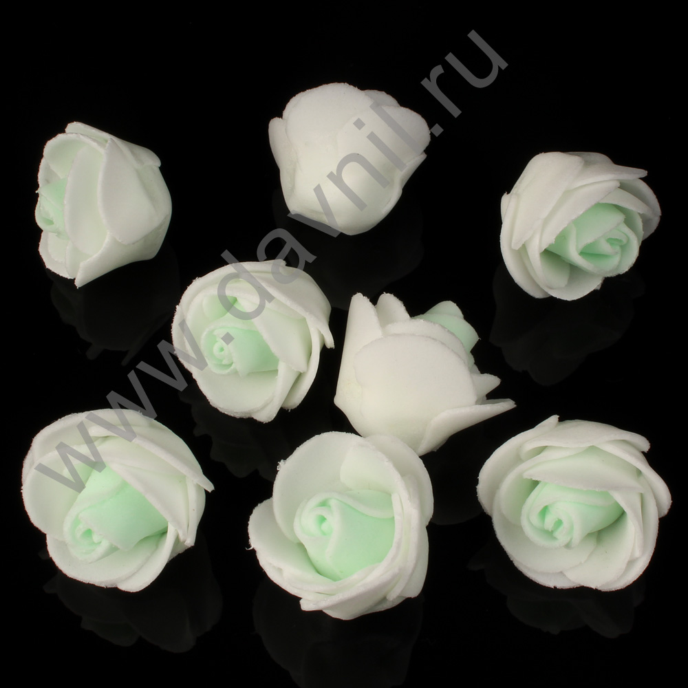 Роза из фоамирана 2 см 50 шт белый/салатовый