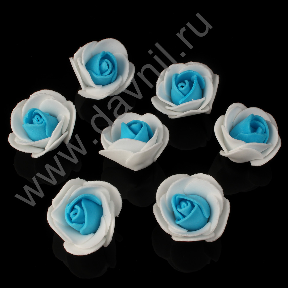 Роза из фоамирана 2 см 50 шт белый/синий