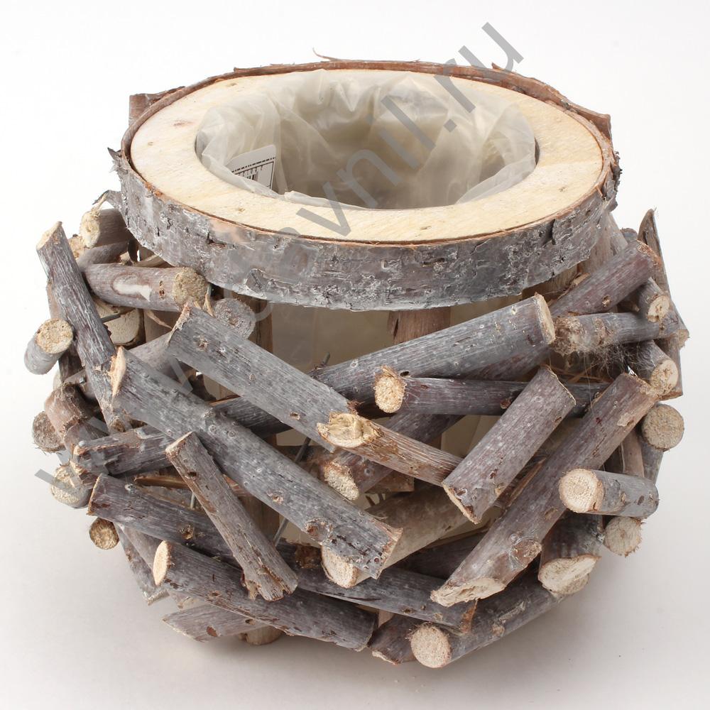 Кашпо деревянное круглое d=11 см серое гнездо