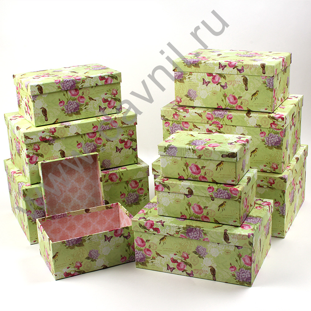 Набор коробок 10 шт. 36*27*16,5 см Прованс зелёные