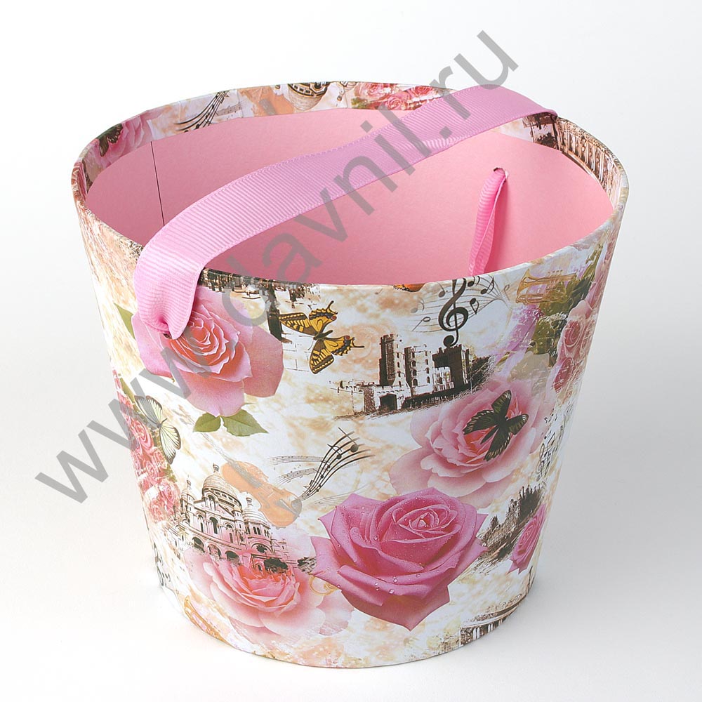 Ведерко с лентой "Роза" W7711-А бежевый