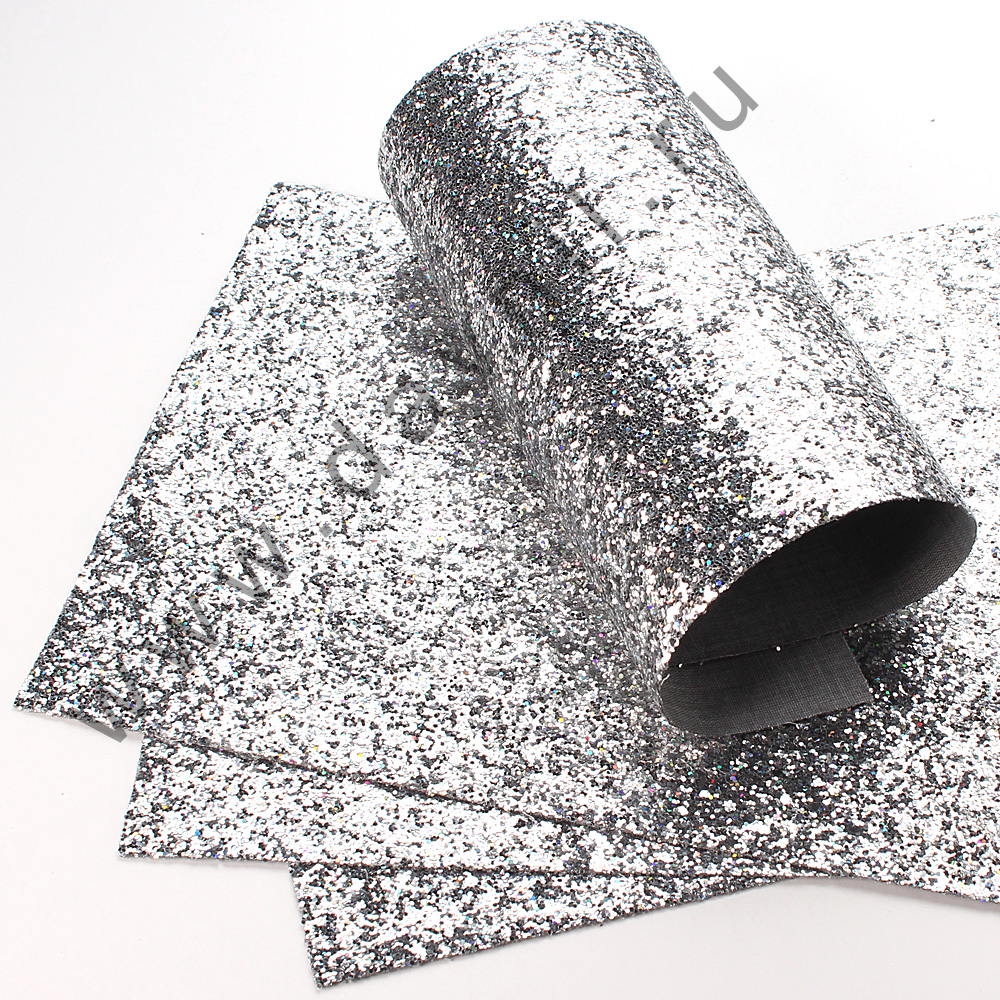 Кожзам крупный глиттер 21*30 см 5 шт серебряный голограмма