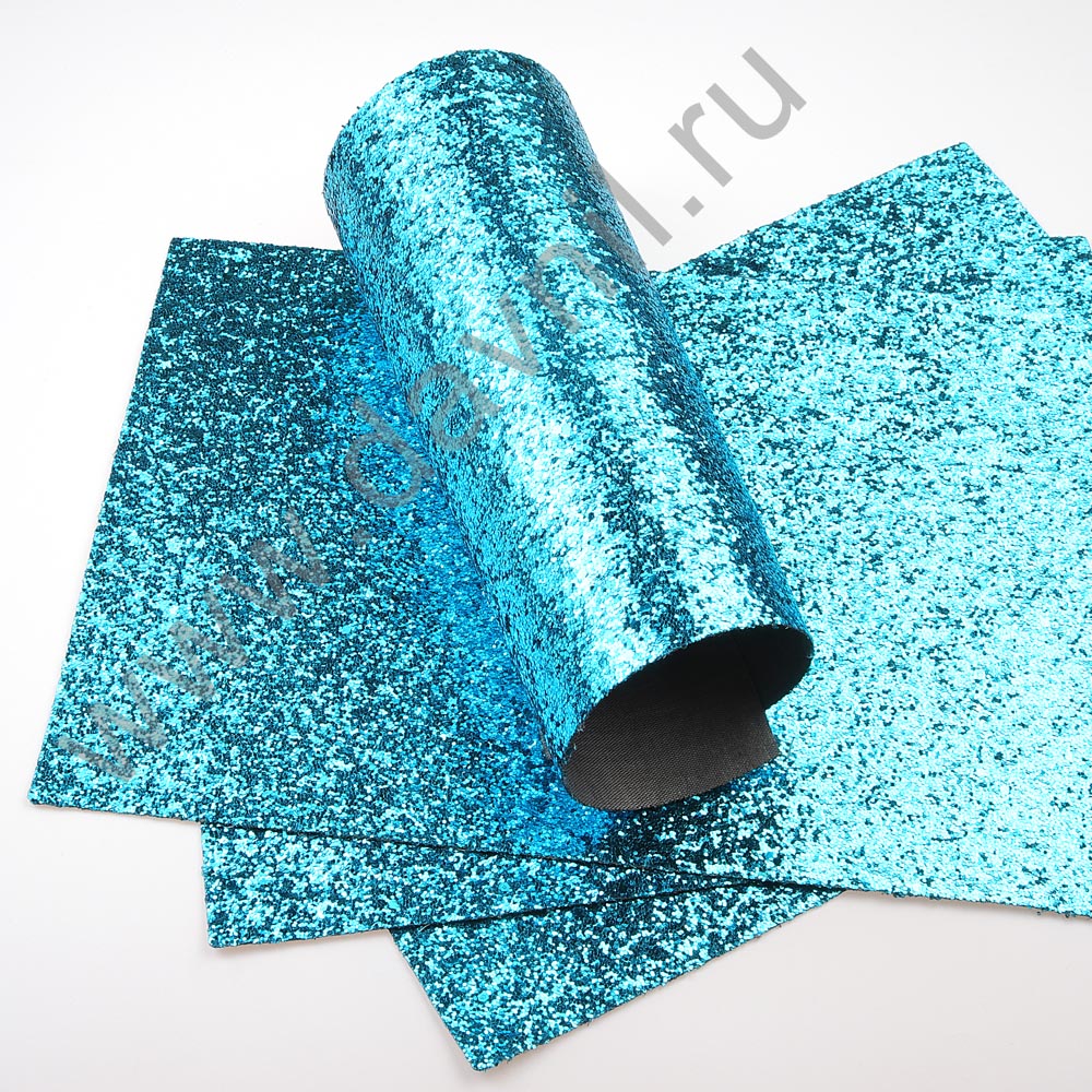 Кожзам крупный глиттер 21*30 см 5 шт голубой
