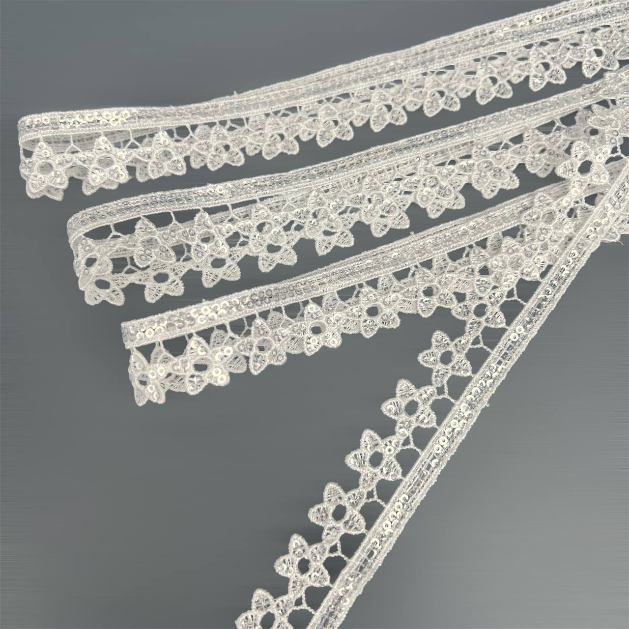 Кружево 2 см ажурный цветочек с пайетками 9 м белое №94