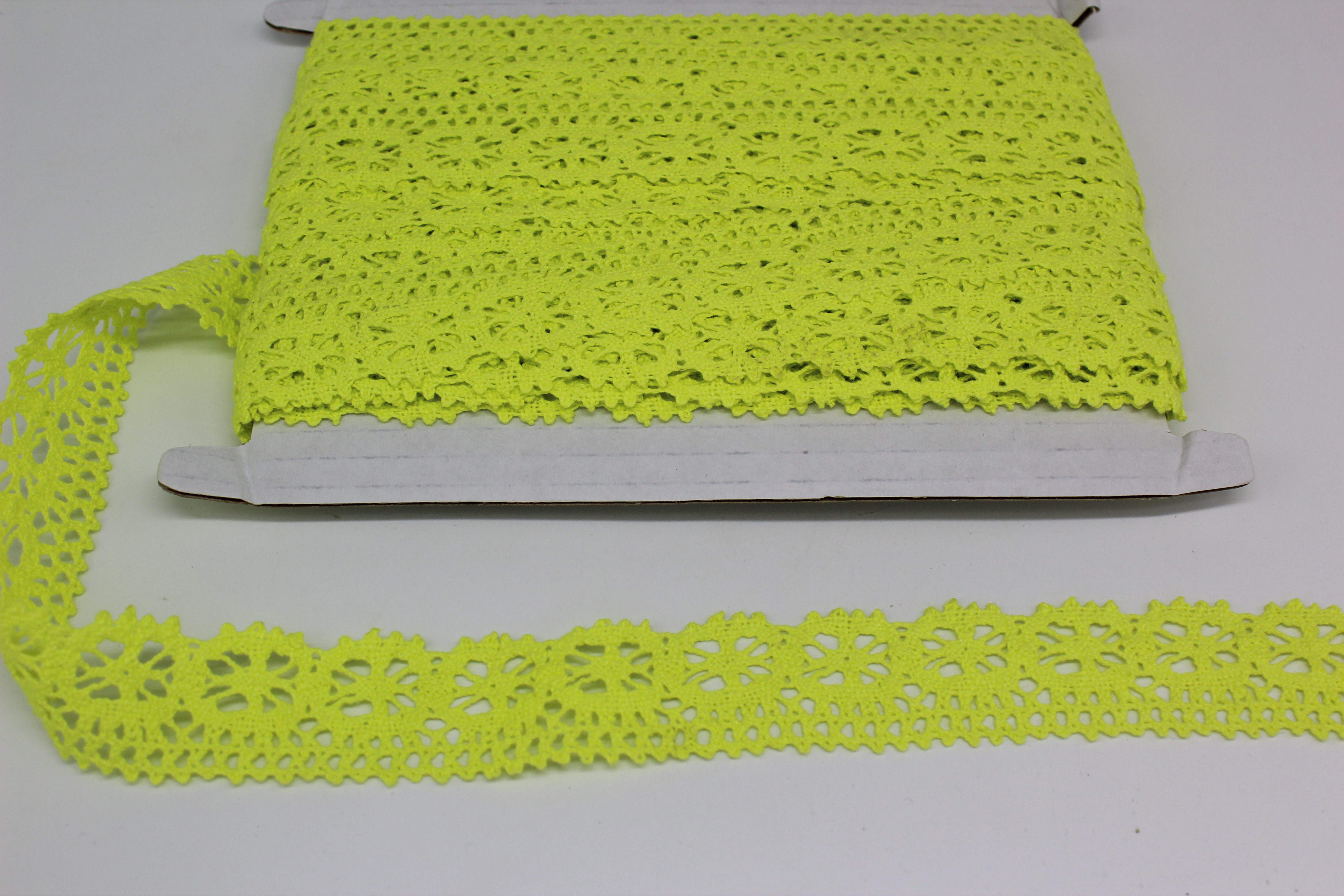 Кружево вязанное 100% лён 2,5 см 13,65 м лимонно-жёлтое,