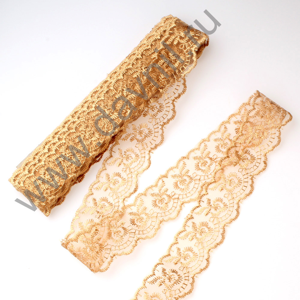 Кружево на органзе 4 см 10 ярдов светло-коричневое