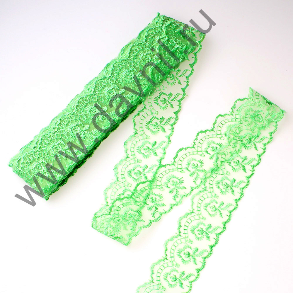 Кружево на органзе 4 см 10 ярдов светло-зелёное