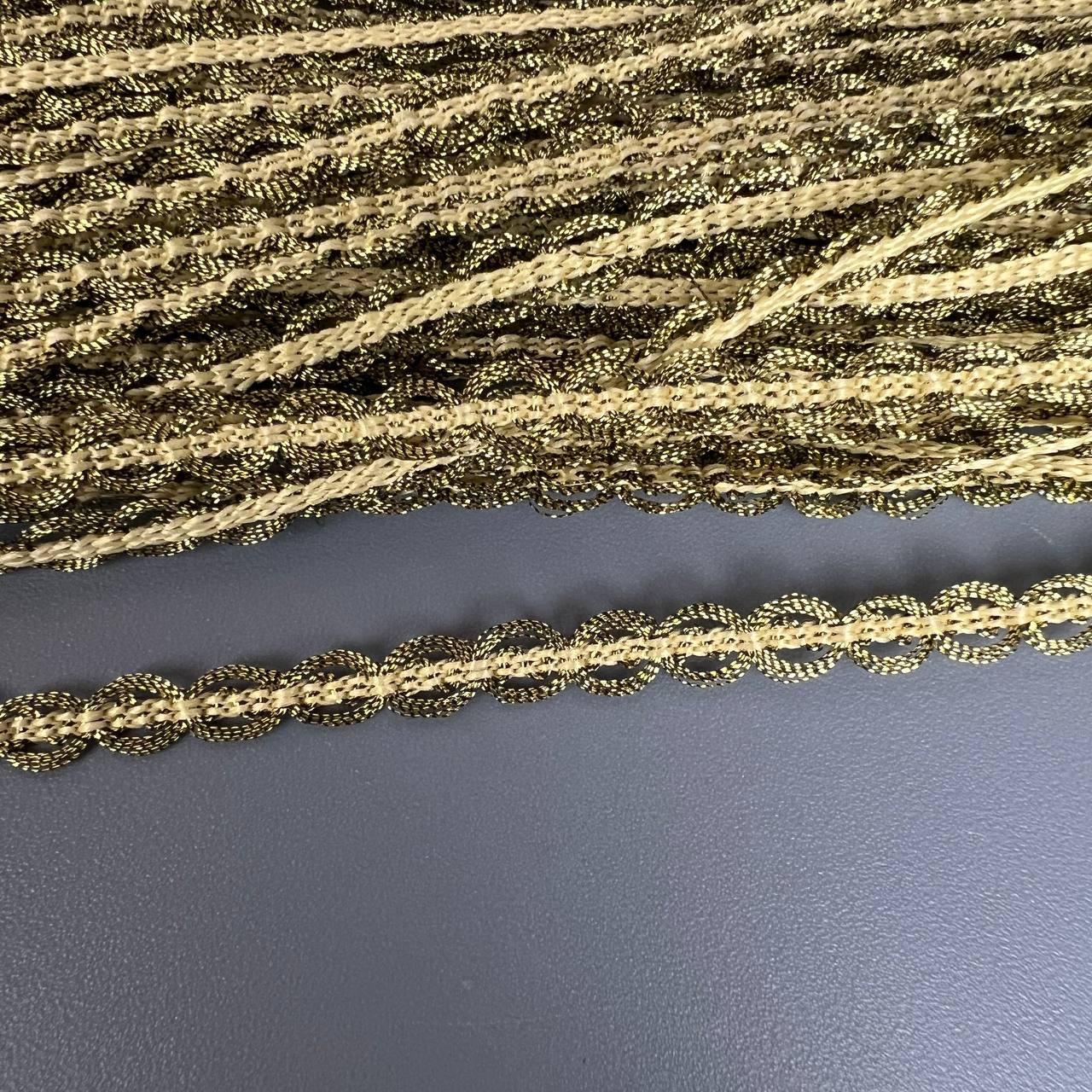 Тесьма 4 мм тёмное золото с петелькой 15 ярдов