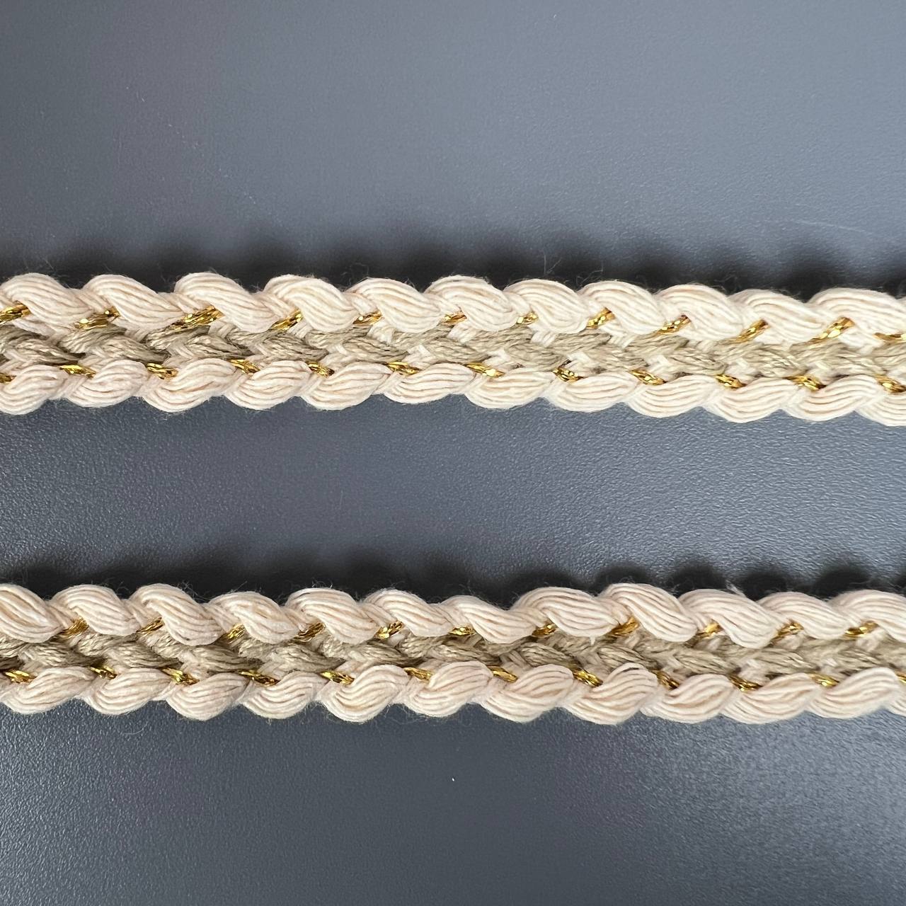 Тесьма 15 мм косичка бежевая с золотом 10 ярдов