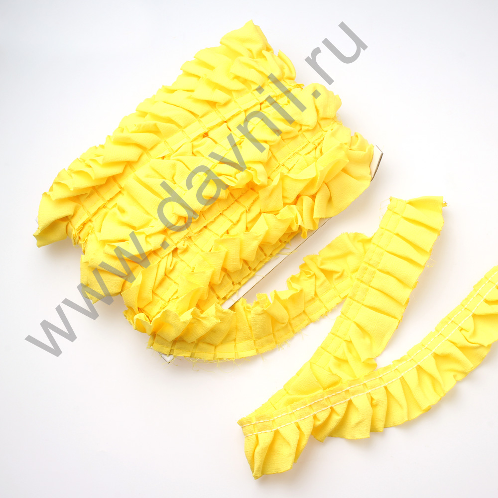Тесьма 4 см 10 ярдов рюшечка лён жёлтая