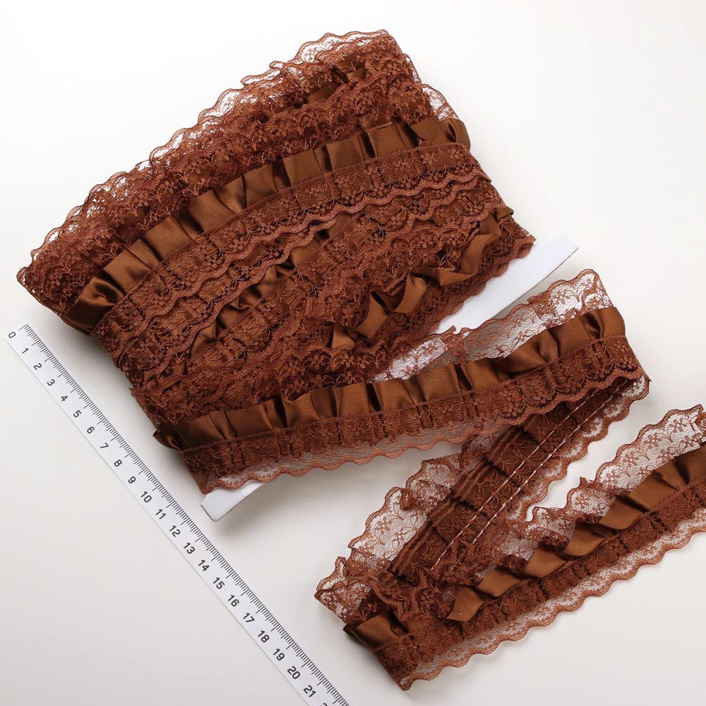 Тесьма 4 см 10 ярдов рюшечка из ленты коричневая