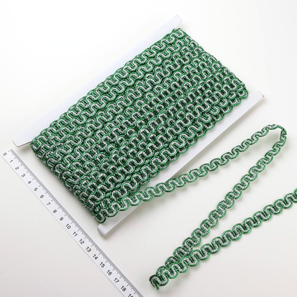 Тесьма зигзаг 1,3 см 20 ярдов зелено-серебряный