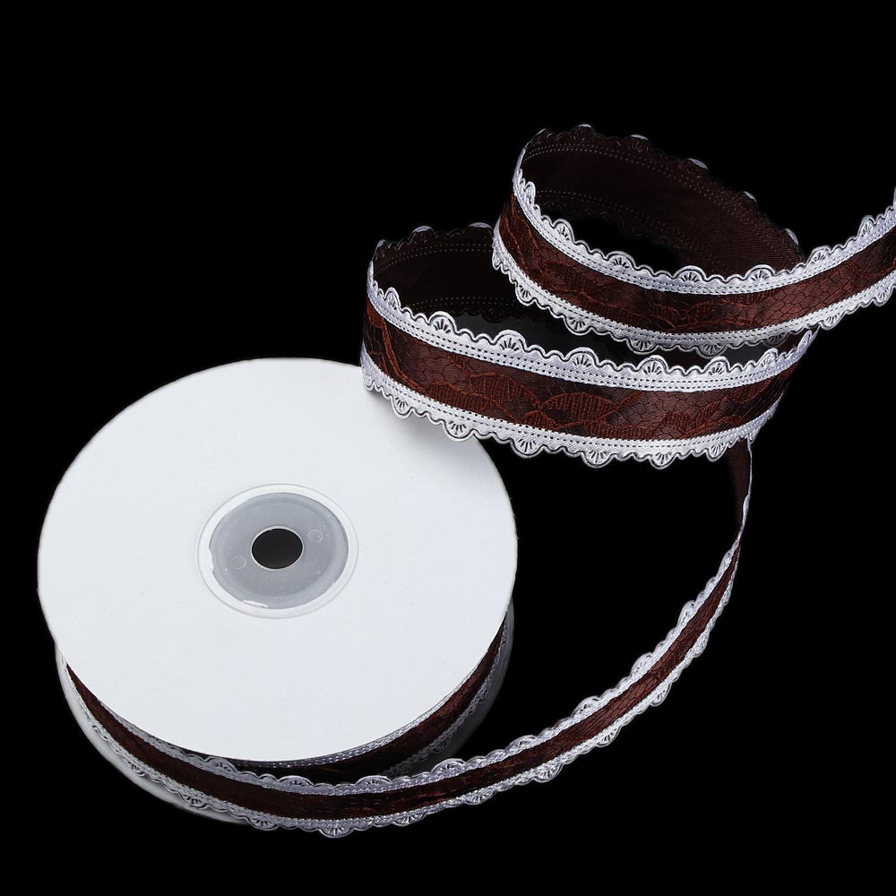 Лента гипюр 2,5 см 15 ярдов с кружевной окантовкой коричневая 11