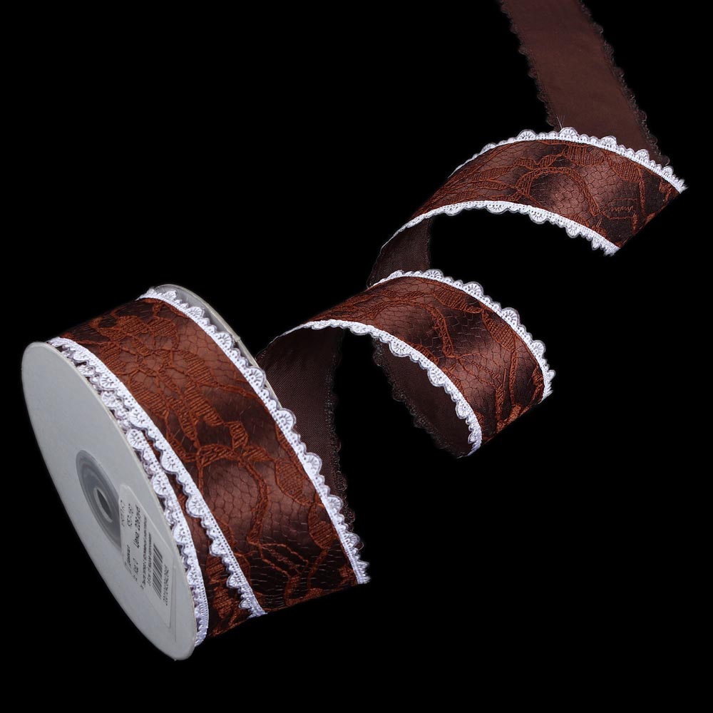 Лента гипюр 3,8 см 15 ярдов с кружевной окантовкой коричневая 4