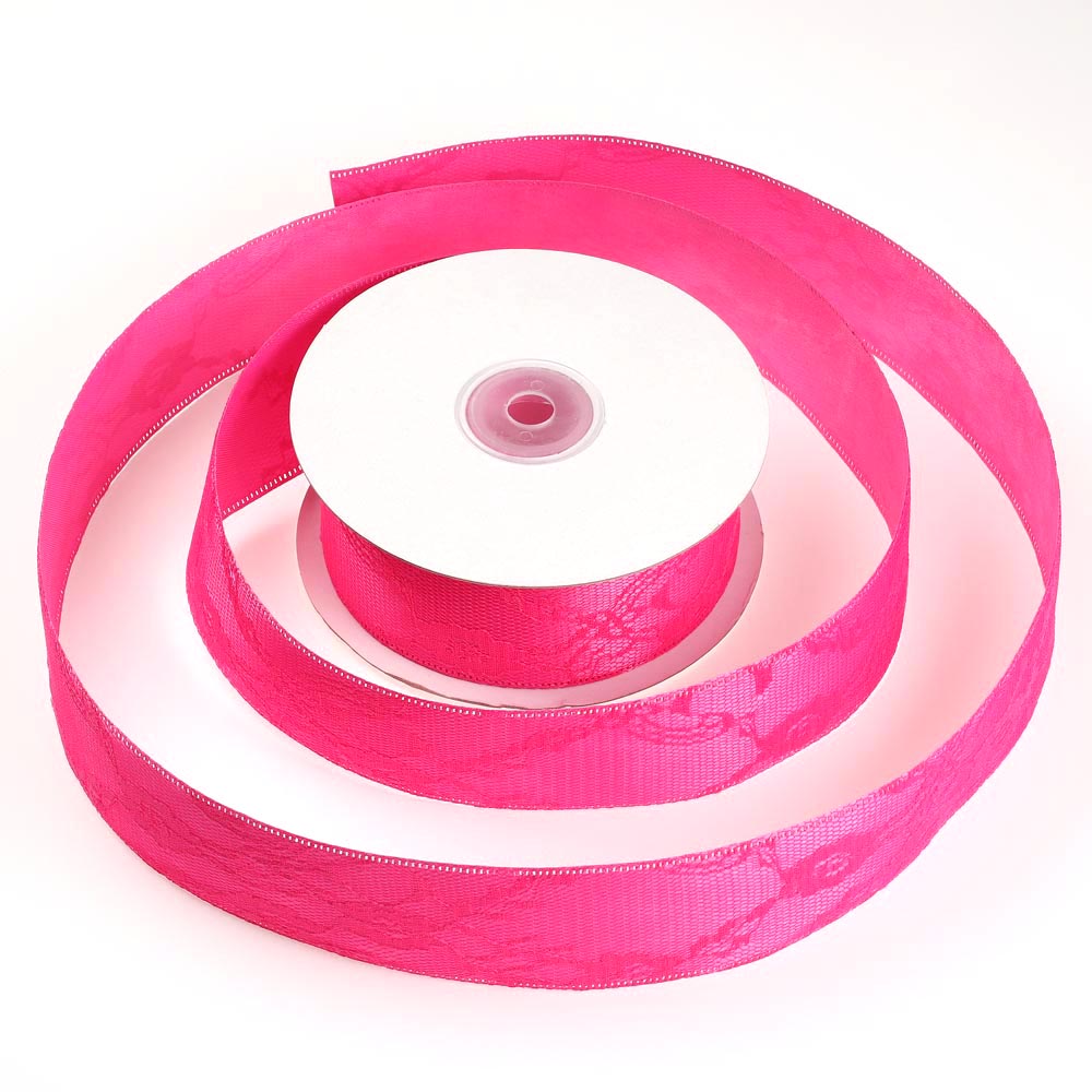 Лента гипюр 4 см 20 ярдов на атласной основе фуксия 5