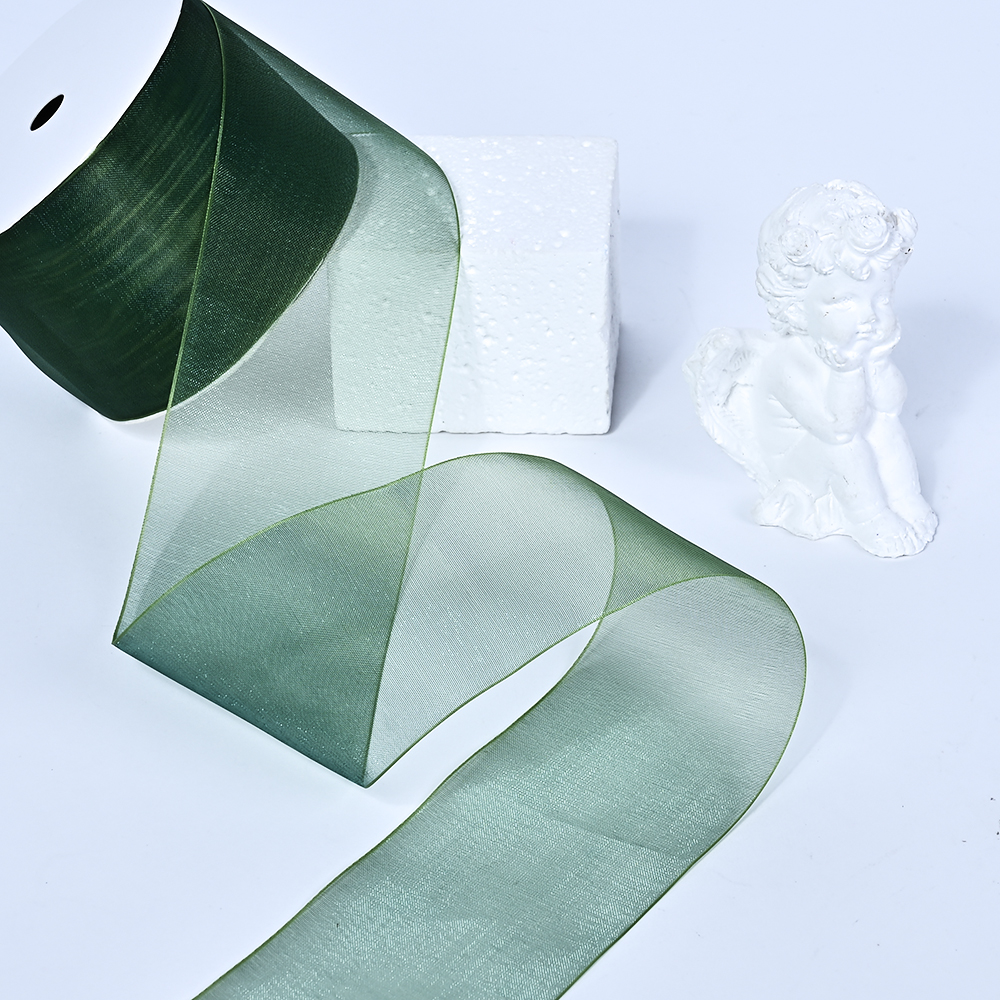2"(50mm)Organza Ribbon 4100 лента органза перламутровая 70 ярдов тёмно зелёная