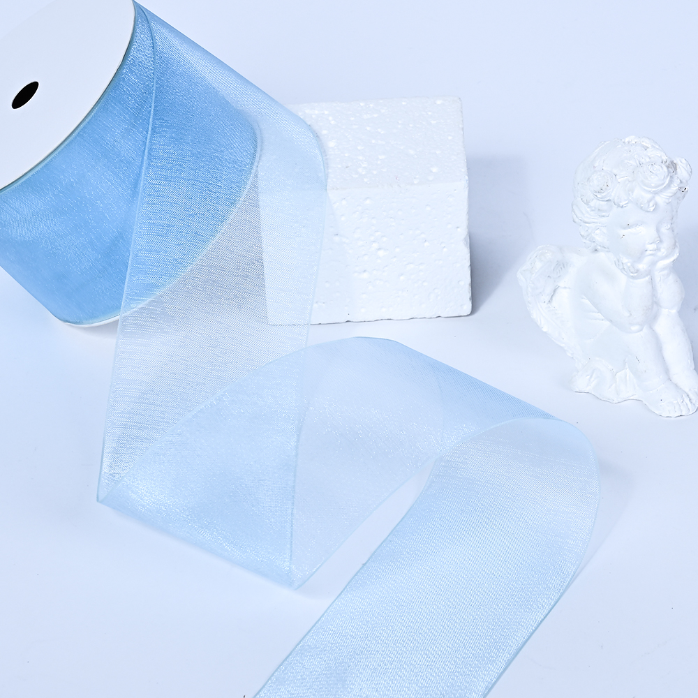 2"(50mm)Organza Ribbon 3015 лента органза перламутровая 70 ярдов голубая