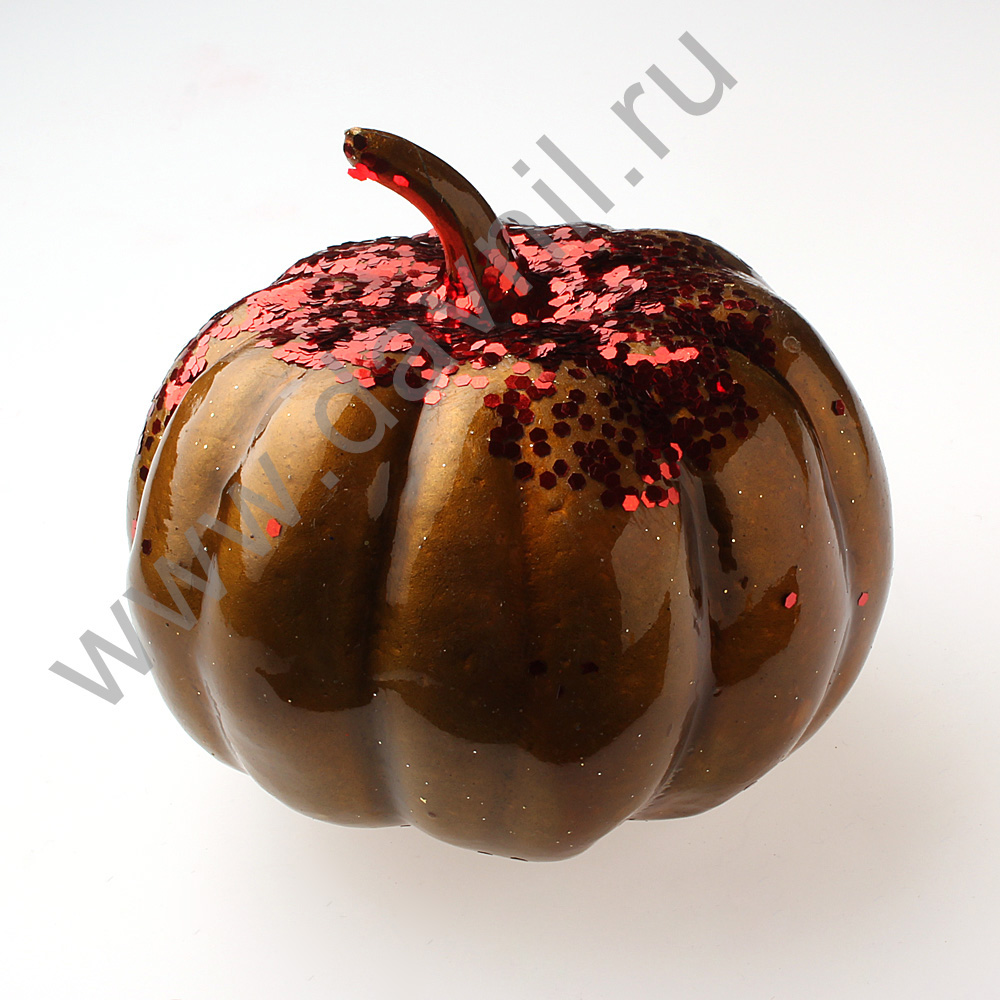 Муляж тыква 9 см 1 шт золотая с красным глиттером (уценка)