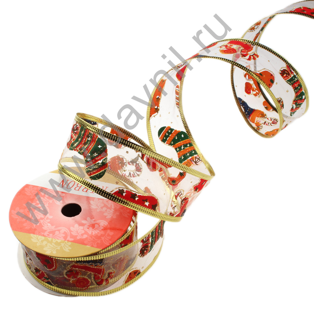 Лента для декорирования с проволочным основанием. Ткань хорошо складывается в банты. Используют для оформления подарков, украшения интерьера, елки, сервировки стола.