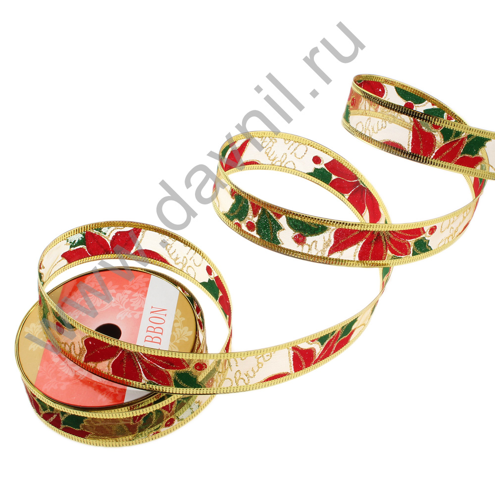 Лента для декорирования с проволочным основанием. Ткань хорошо складывается в банты. Используют для оформления подарков, украшения интерьера, елки, сервировки стола.