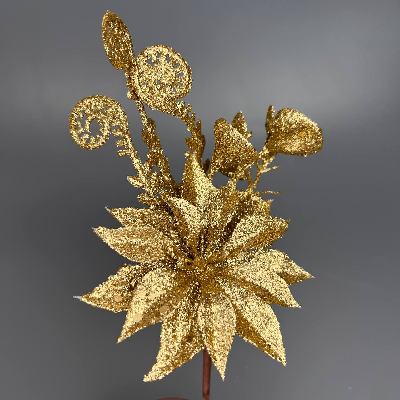 Новогодняя веточка 19*7 см L19-27 золотая с глиттером