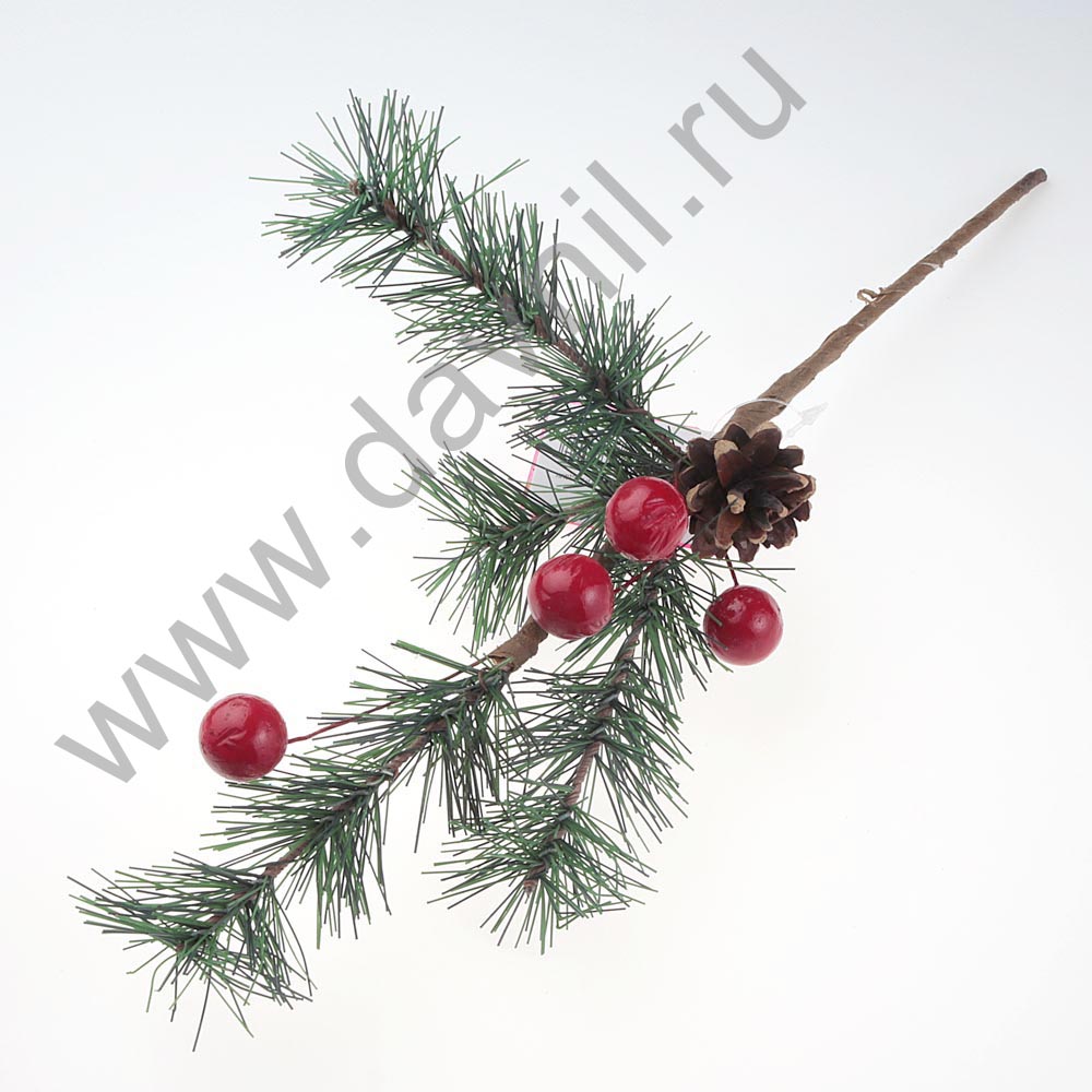 Ветка еловая с красными ягодами и шишкой 30 см