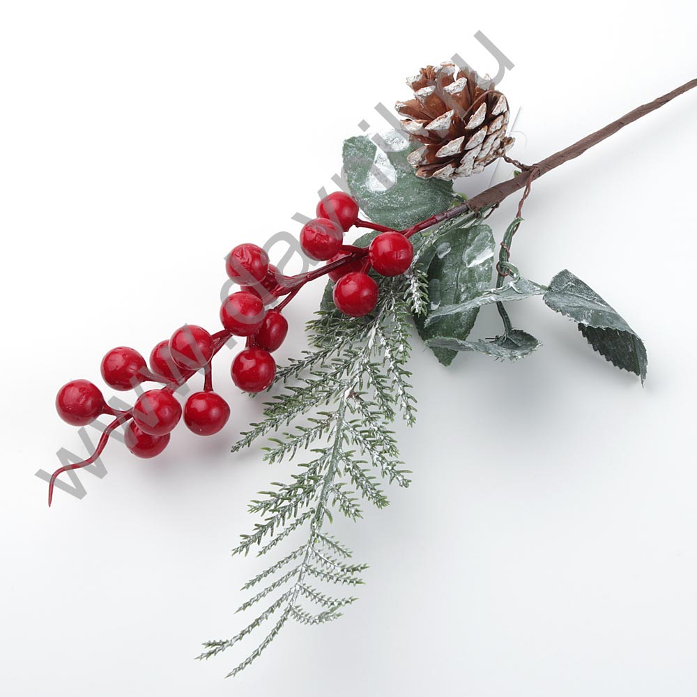 Новогодняя декоративная веточка 35 см композиция рябины с шишечкой