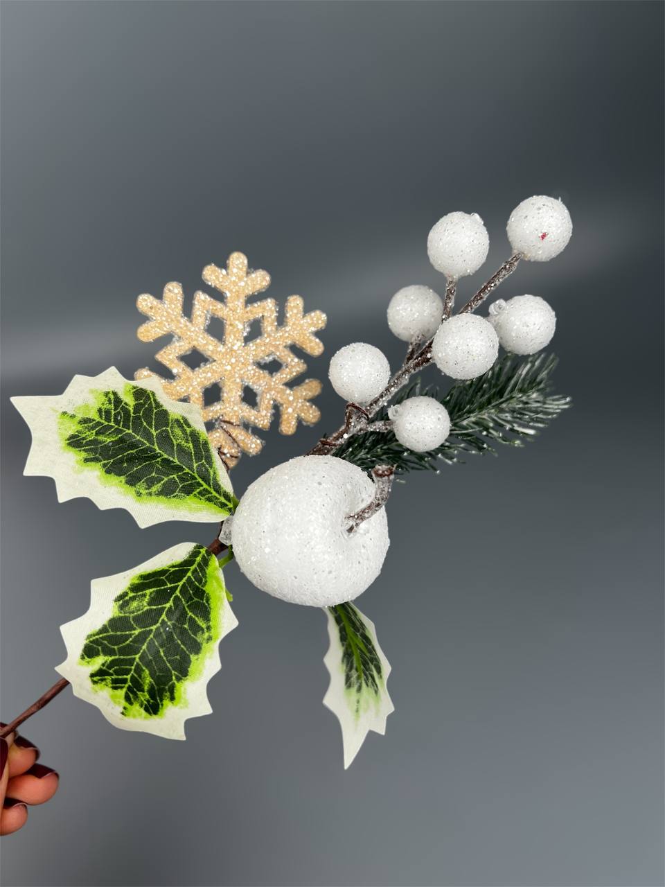 Композиция декоративной веточки, украшенной новогодними аксессуарами - это смелое решение для создания праздничного настроения. Эти веточки не только позволят вам быстро украсить ваш интерьер, но и найдут широкое применение в рукоделии. Ветки изготовлены из высококачественных материалов, которые имитируют текстуру и цвет ели. В 1 коробке 40 упаковок по 12 штук