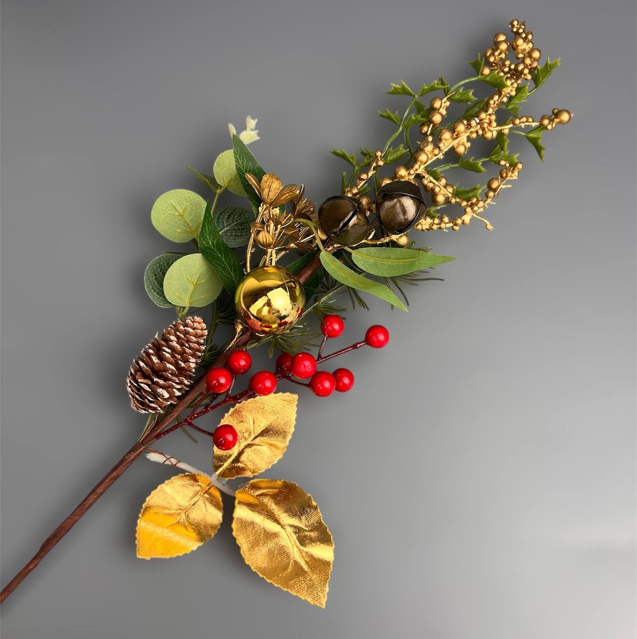 Новогодняя декоративная веточка (JM25393) 65 см с бубенцами