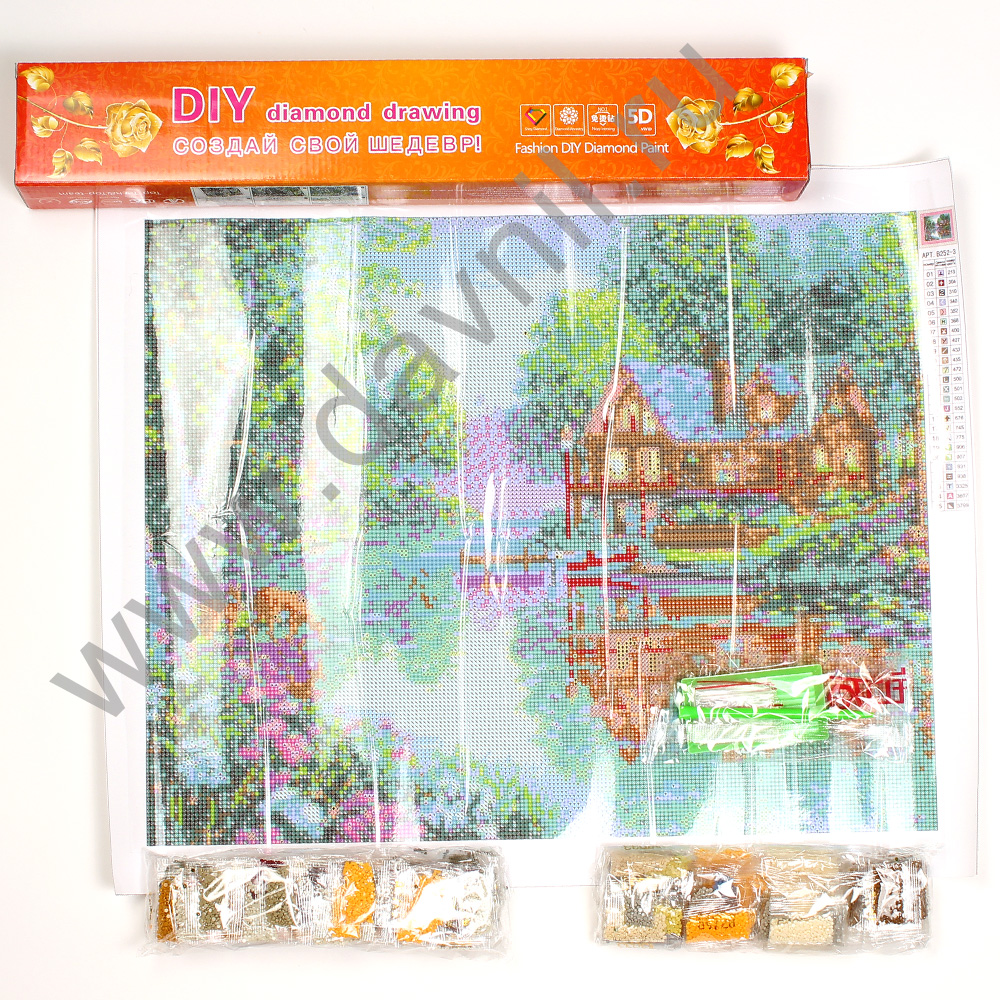 Алмазная мозаика 46*56 см 1 шт."летний домик у озера"