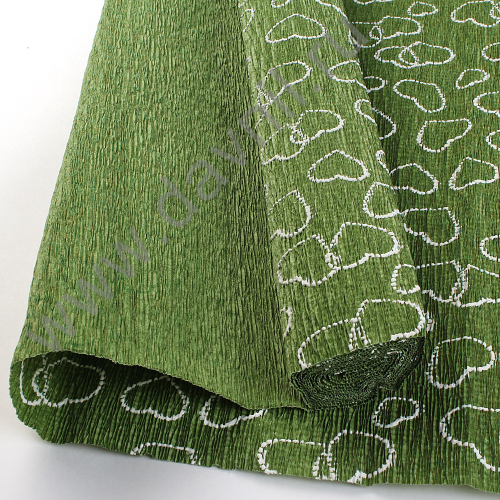 Бумага гофрированная 50 см 2,5 м с белыми сердечками хаки 5