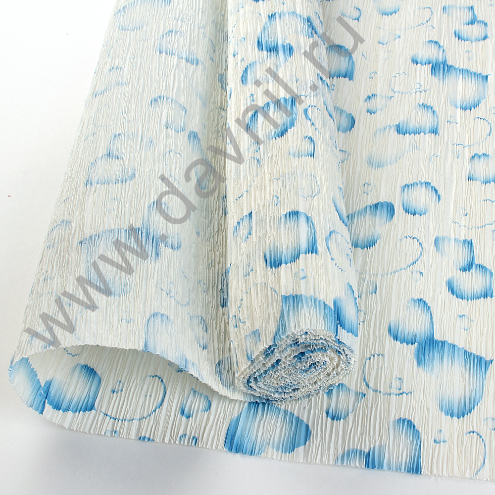 Бумага гофрированная 50 см 2,5 м с голубыми сердечками белая 1