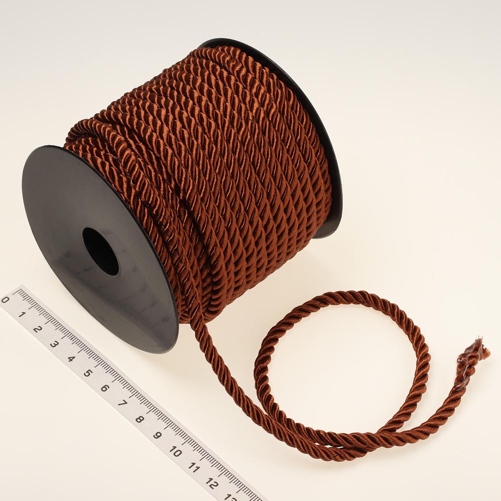 Шнур витой однотонный 5 мм 25 м коричневый 043.