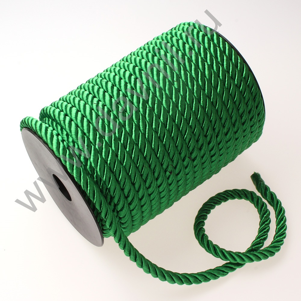 Шнур витой однотонный 8 мм 25 м зеленый.